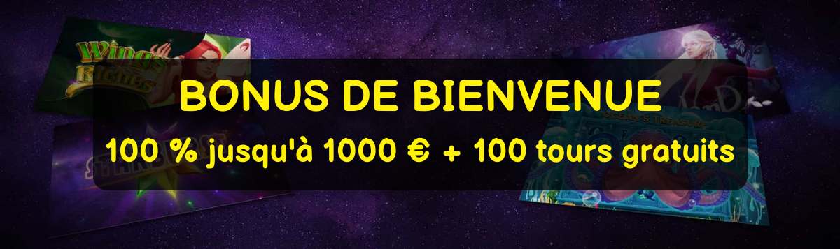 Bonus à l’Achat Grand Bonus de Bienvenue : 100% jusqu’à €78.100 + 100 tours gratuits sur les 4 premiers dépôts